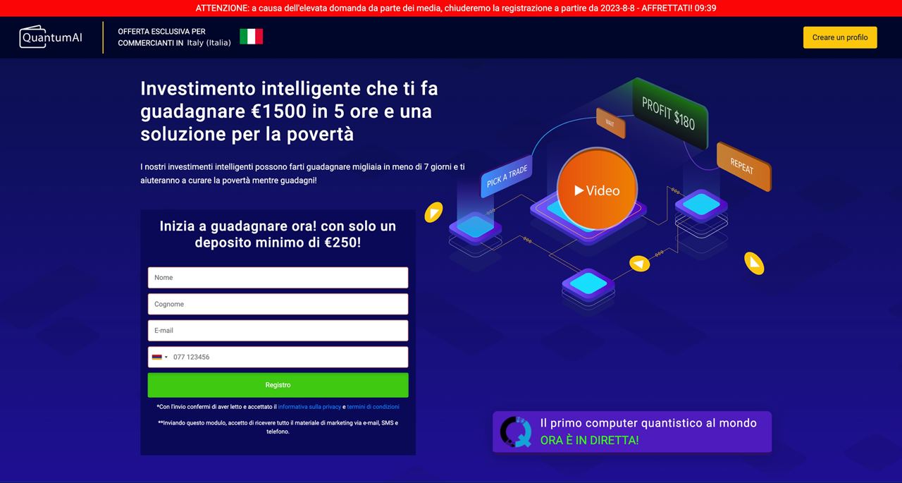 "La nostra nuova piattaforma, Quantum AI aiuta le persone a diventare RICCHE rapidamente, invece di lavorare per ogni centesimo, facciamo lavorare i soldi PER TE!"