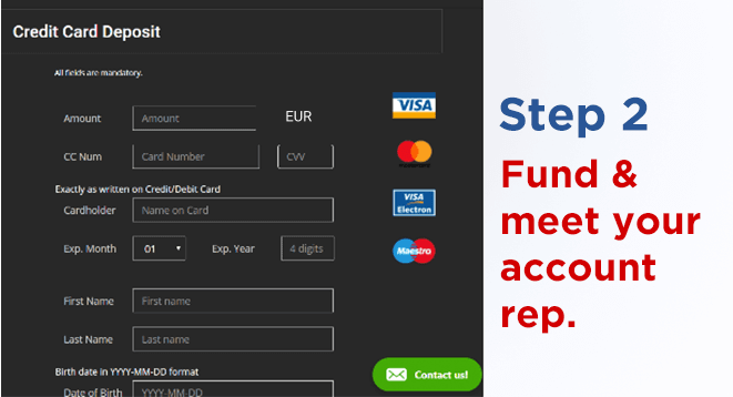 Ovviamente, si trattava del mio account manager personale. Il suo servizio è stato ottimo. Mi ha accompagnato in tutto il processo di finanziamento. Accettano tutte le principali carte di credito Visa, MasterCard e American Express. Ho proceduto a depositare l'importo minimo di €250.
